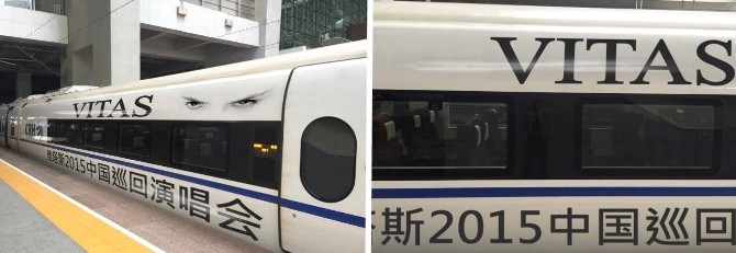Vitas tour poster advertisements on city buildings all over China.